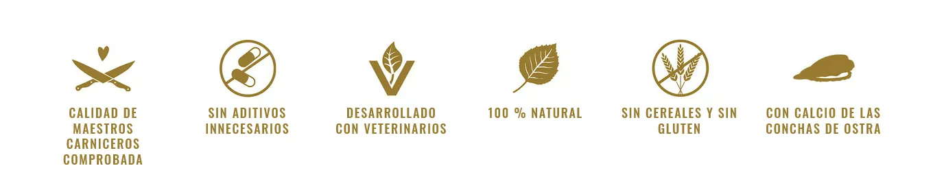 - Procesamiento exclusivo de carne muscular y de corazón de una fuente de proteínas baja en alérgenos y una sola verdura (batata, tupinambo o chirivía)