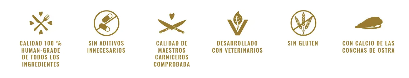 Los Ragouts de Terra Canis recuerdan a un ragú tradicional. Según el menú, en una lata se cocinan jugosos gulash de ternera, venado o pavo o tiernas pechugas de pollo y corazones enteros de pollo en su propio caldo de carne. También hay verduras y frutas finamente picadas, así como bayas y hierbas. Todo se cocina suavemente para conservar en gran medida la forma y el aspecto de la carne, las verduras y las frutas y todos los nutrientes naturales que contienen. El resultado es un plato único y deliciosamente aromático para perros que, con sus tiernos y jugosos trozos de carne, la colorida mezcla de verduras y frutas y su abundante aroma, parece un guiso casero. Todas las materias primas son de calidad alimentaria.