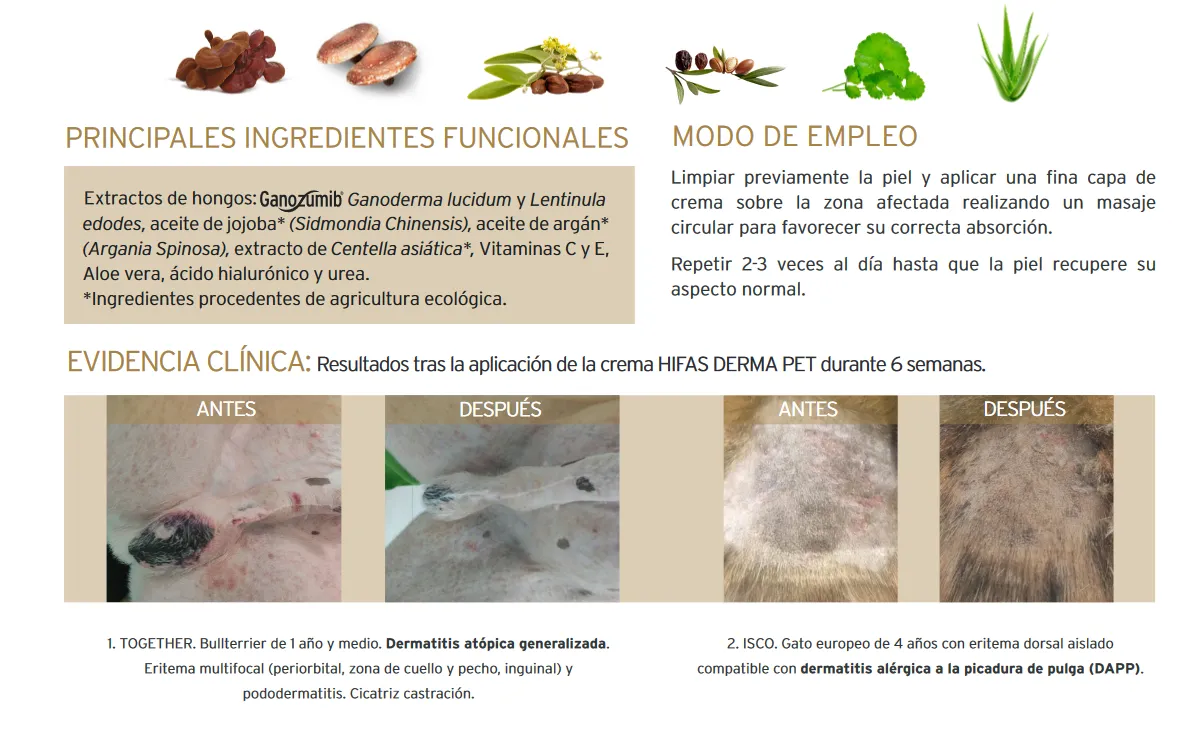 -Mejora el aspecto general de la piel de perros y gatos y ayuda a la cicatrización de heridas (traumáticas y/o postquirúrgicas).