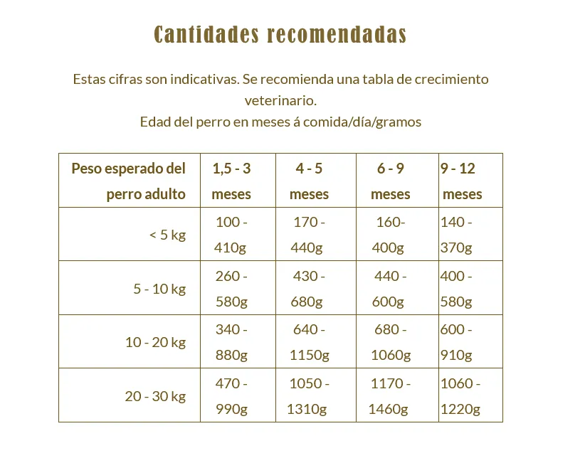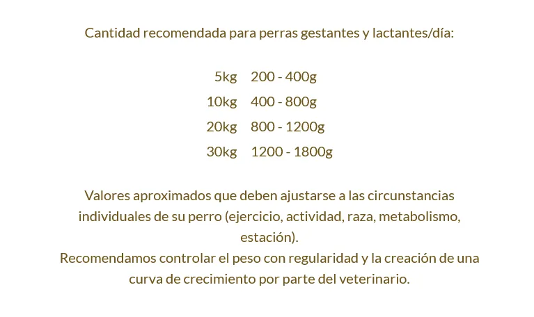 Las bases para que el perro tenga una vida sana se sientan en los primeros meses. En esta etapa, el organismo desarrolla con facilidad intolerancias, enfermedades gastrointestinales o molestias en las articulaciones. Es fundamental apostar desde el primer día por una alimentación de alta calidad. Los menús se desarrollan con veteri - narios y están hechos de abundante carne muscular fresca, vísceras de alta calidad, fruta y verdura y complementos alimenticios naturales (arcilla mineral, alga marina, levadura de cerveza, polen de flor, escaramujo). Una gran cantidad de polvo concha de ostra aporta suficiente calcio en la etapa de crecimiento. En cada menú se ha creado un equilibrio óptimo en la relación entre el calcio y el fósforo. El sílice es famoso por su efecto beneficioso sobre el crecimiento de articulaciones y tendones y por el almacenamiento de calcio en los huesos. La proporción de pseudocereales sin gluten es baja, con un máximo del 5 %, lo que evita una sobrecarga para la digestión. Todos los ingredientes presentan calidad human-grade, lo que se percibe de inmediato por su olor delicioso. Los menús PUPPY son adecuados para cachorros y perros jóvenes hasta una edad de aproximadamente un año.