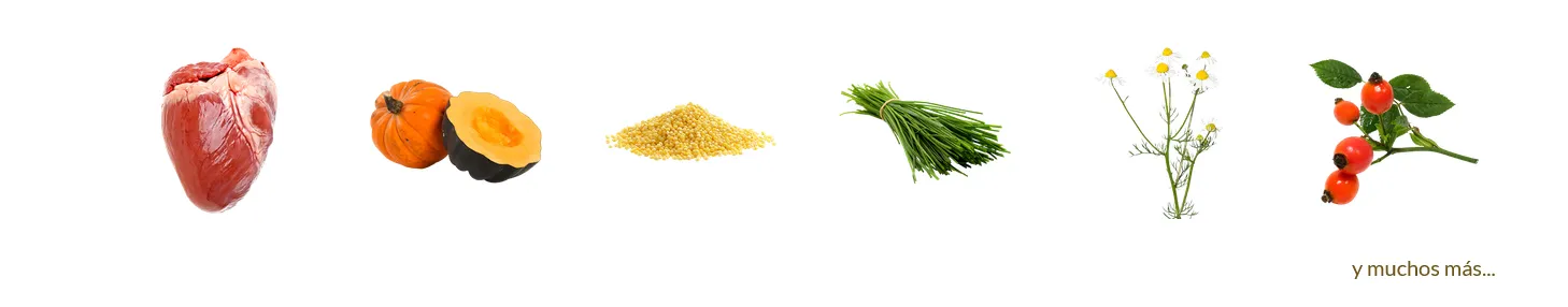 Corazón de pollo (33%), estomago de pollo (14%), calabaza (14%), mijo, manzana, tomate, carne muscular de pollo (6%), hígado de pollo (4%), aceite de colza, harina de semilla de calabaza (1%), concha de ostra*, levadura de cerveza*, manzanilla*(0,2%), slice*, polvo de escaramujo*, arcilla mineral*, polen de flo*, alga marina*, minerales *seco