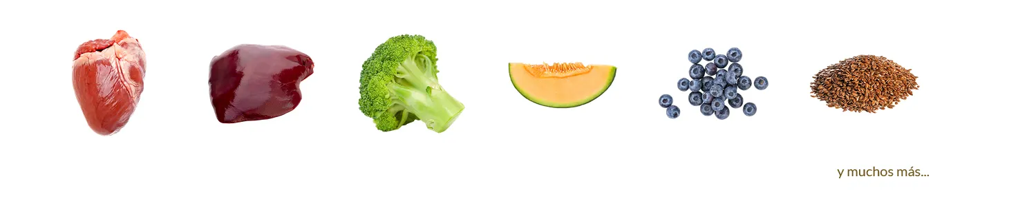 Molleja de pavo (21 %), corazón de pavo (14 %), piel de pavo (11 %), zanahoria, molleja de pato (7 %), hígado de pavo (6 %), carne muscular de pavo (6 %), pepino (5,9 %), brécol (4 %), melón (4 %), aceite de colza, arándano (2 %), grosella roja (2 %), aceite de pescado, harina de coco, semillas de lino, ß-glucanos, raíz de achicoria*, levadura de cerveza*, cúrcuma* (0,1 %), L-carnitina, albahaca*, romero* (0,1 %), tomillo* (0,1 %), concha de ostra*, arcilla mineral, espirulina*, minerales*. *secado