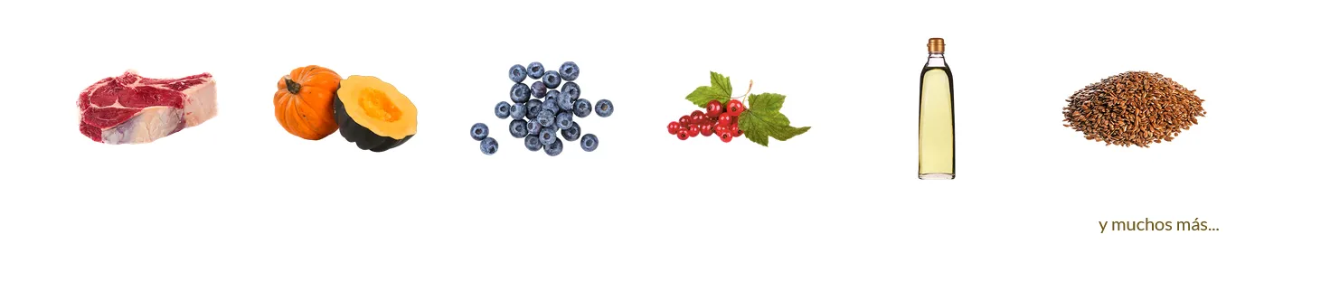 Corazón de vacuno (19 %), venado (19 %), pulmón de vacuno (11 %), calabaza (10 %), calabacín (8 %), hígado de vacuno (5 %), remolacha* (5 %), aceite de colza, grasa de vacuno (4 %), manzana (4 %), arándano (2 %), grosella negra (2 %), aceite de pescado, harina de coco, linaza, ß-glucanos, raíz de achicoria*, levadura de cerveza*, cúrcuma* (0,1 %), L-carnitina, perejil* (0,1 %), romero* (0,1 %), tomillo*, arcilla mineral*, concha de ostra*, espirulina*, minerales* *deshidratados.