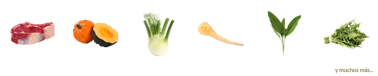 Carne : patatas : verdura / fruta / hierbas : demás materias primas 59 % : 11 % : 26 % : 4 %.
